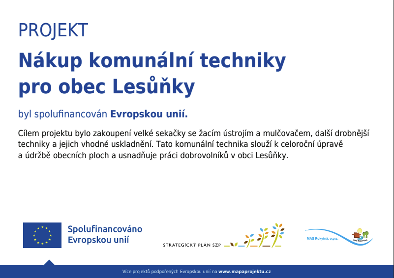 a údržbě obecních ploch a usnadňuje práci dobrovolníků v obci Lesůňky.
